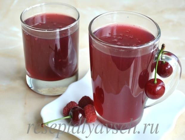 Чорницю, або смородину, вишню перебирають, видаляють плодоніжки, миють у вишні видаляють кісточку. Фрукти і ягоди протирають. Сік віджимають і проціджують. Вичавки заливають гарячою водою ( на одну частину вичавок 5-6 частин води), проварюють при слабкому кипінні 10-15 хв, та проціджують. В отриманий відвар (частину його охолоджують і використовують для розведення крохмалю) додають цукор, доводять до кипіння і при безперервному помішуванні відразу вливають приготовлений крохмаль, знову доводять до кипіння і додають віджатий сік.